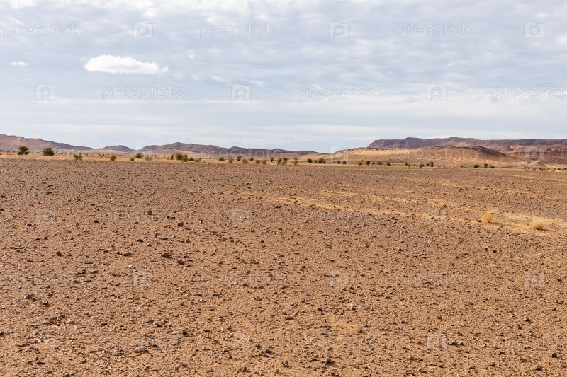 Пустынная каменная пустыня в Сахаре, гравийная пустыня