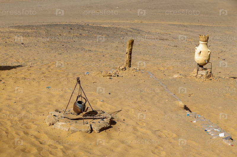 Чайник и кувшин на фоне песка в пустыне Сахара Марокко