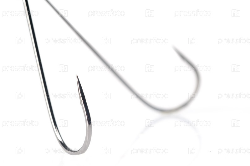 Рыболовный крючок на белом фоне