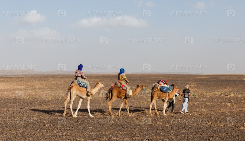 Караван верблюдов в пустыне Сахара в Марокко