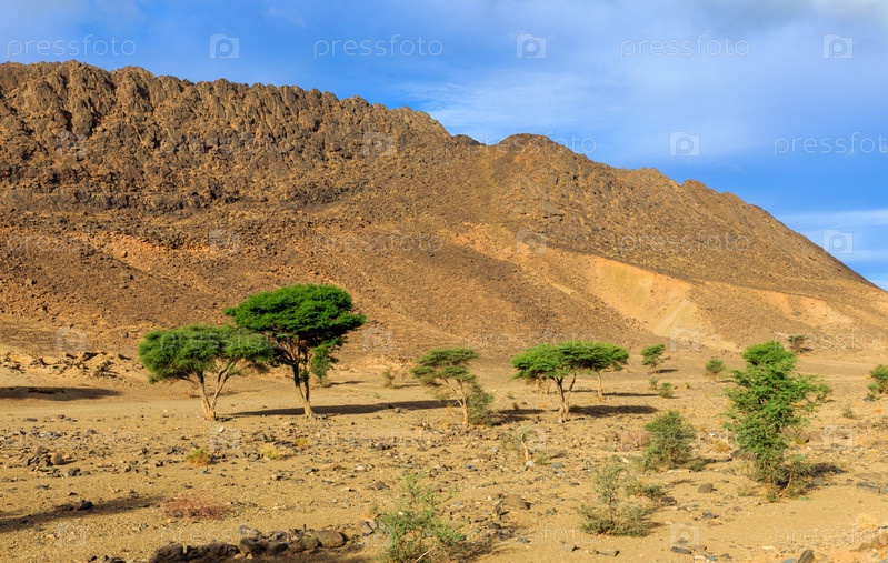 Деревья на фоне горы, Марокко