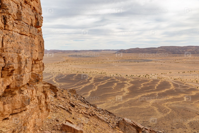 Гора в пустыне Сахара, часть горы, красивый пейзаж, вид с вершины горы на пустыню