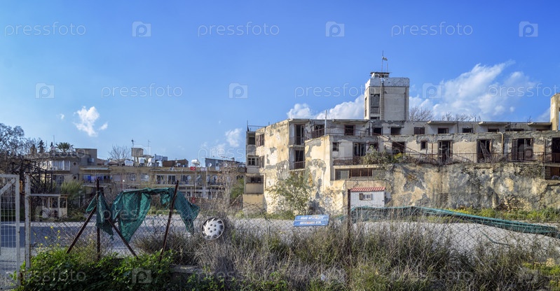 Никосия, Кипр, 21 марта 2017 г.: буферная зона Организации Объединенных Наций (зеленая линия) на Кипре в Никосии