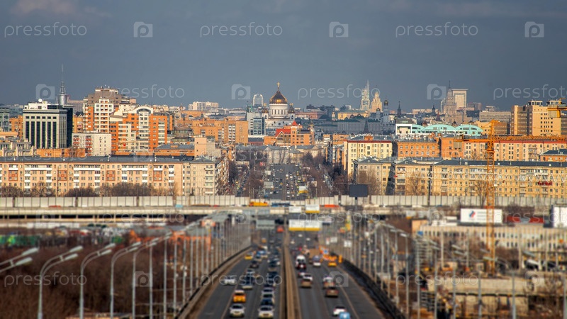 Россия, Москва: 21 февраля 2020 г. - Прекрасный вид на весеннюю Москву с моста на Воробьевых горах