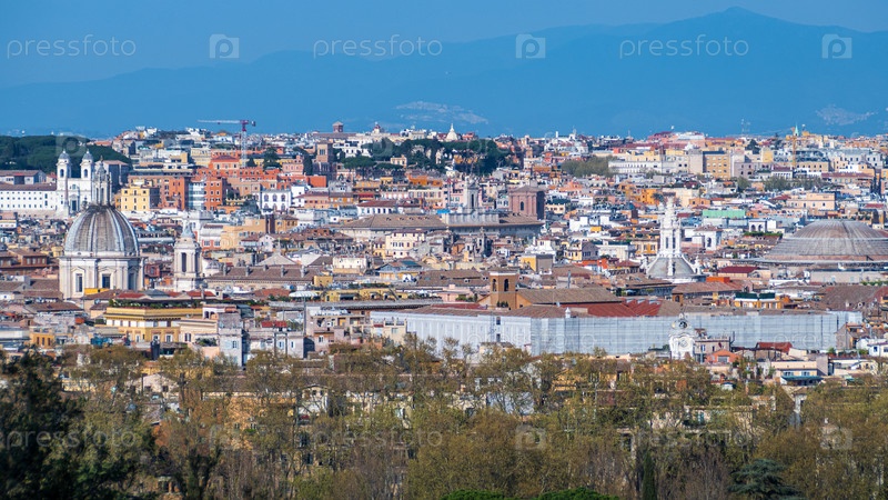Рим (Италия) - Вид на город с холма Яникул и террасы, с Витториано, церковью Тринита-деи-Монти и дворцом Квиринале