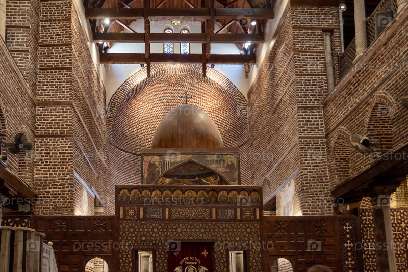 Каир, Египет - 13 апреля 2021 г.: Внутри церкви Абу Серга. Церковь Святых Сергия и Вакха, также известная как Абу Серга, в коптском Каире, является одной из старейших коптских церквей в Египте