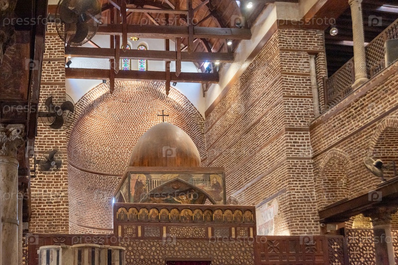 Каир, Египет - 13 апреля 2021 г.: Внутри церкви Абу Серга. Церковь Святых Сергия и Вакха, также известная как Абу Серга, в коптском Каире, является одной из старейших коптских церквей в Египте