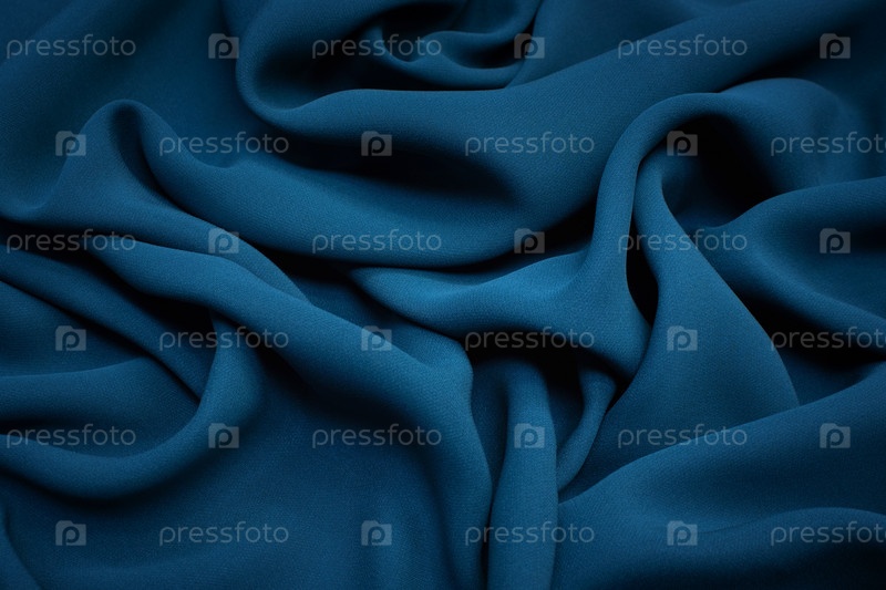 Текстура шелковой ткани цвета темной морской волны. Фон, узор