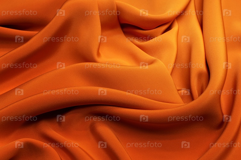 Текстура шелковой ткани оранжевого цвета. Фон, узор