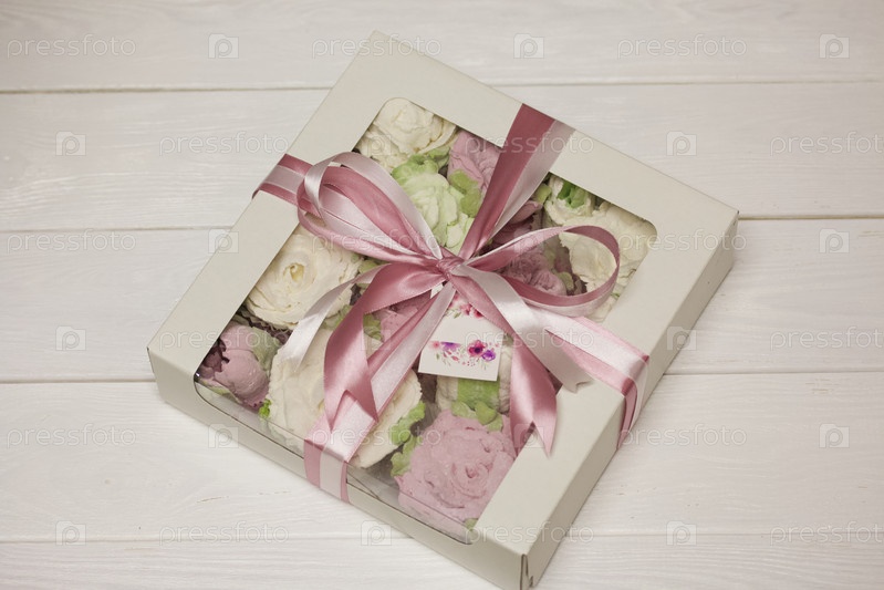 Домашний зефир в картонной коробке. Зефир цветы. Подарочная упаковка. Перевязан лентой