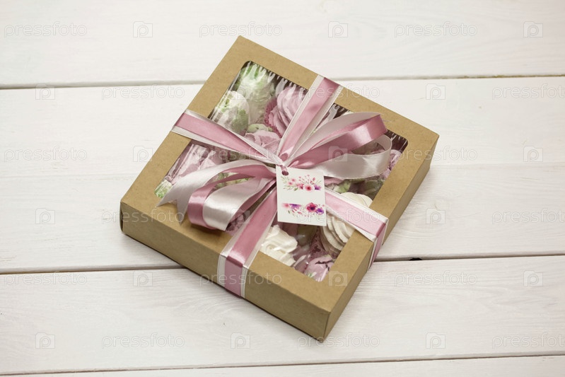 Домашний зефир в картонной коробке. Зефир цветы. Подарочная упаковка. Перевязан лентой