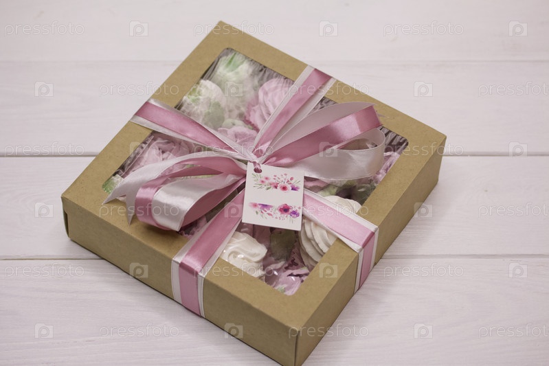 Домашний зефир в картонной коробке. Зефир цветы. Подарочная упаковка. Перевязан лентой