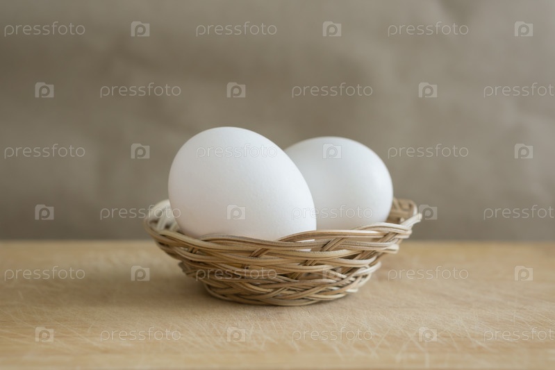 Два белых яйца в корзине