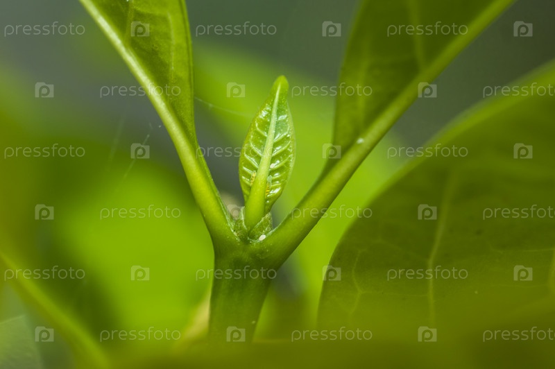 Молодой зеленый листок на ветке