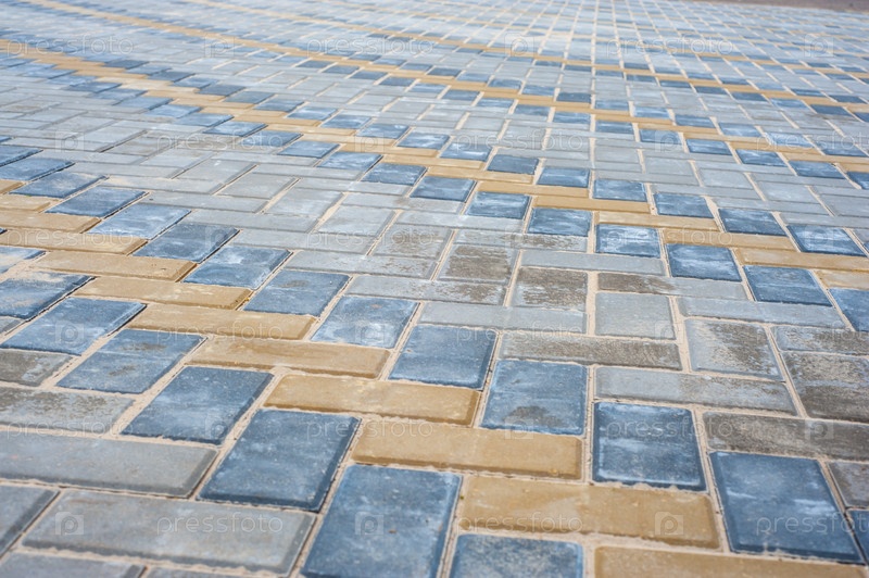 Тротуарная плитка разных цветов и форм. Текстура разноцветной узорчатой тротуарной плитки