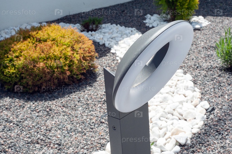 Уличная лампа на дворовой лужайке для садового освещения в летнем парковом свете