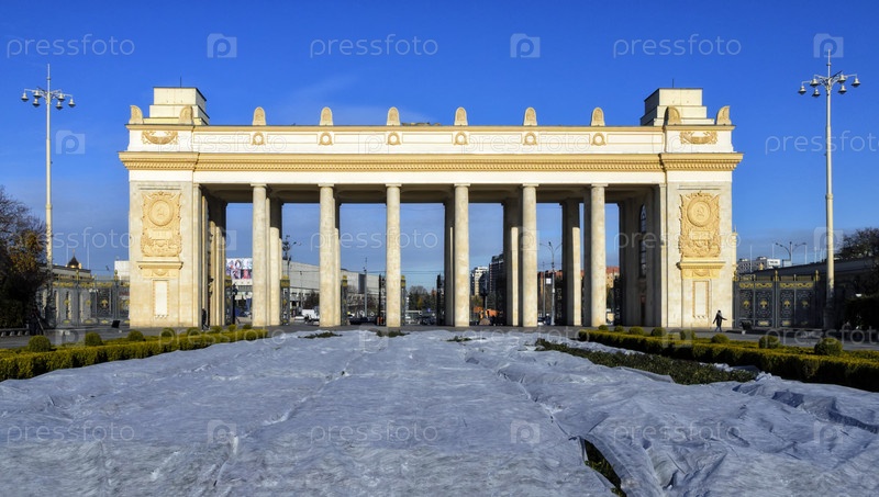 Главные въездные ворота парка Горького, одной из главных городских достопримечательностей и ориентиров в Москве, Россия