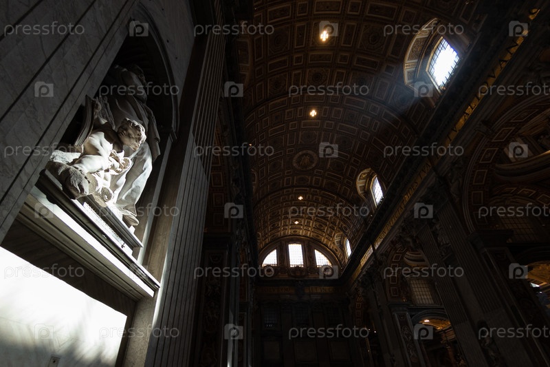 РИМ - 31 марта 2019 г.: Внутри собора Святого Петра или Сан-Пьетро в Ватикане, Рим, Италия. Панорама роскошного интерьера эпохи Возрождения. Святой Петр – одна из главных достопримечательностей Рима