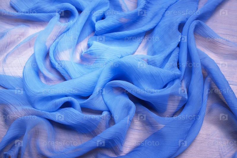 Текстура шелковой ткани синего цвета. Шифон. Фон, узор