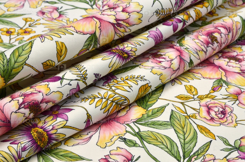 Хлопчатобумажная ткань с цветочным орнаментом на белом