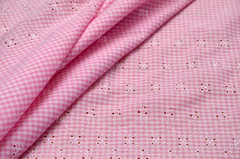 Хлопчатобумажная ткань, пошив по бело-розовой клетке