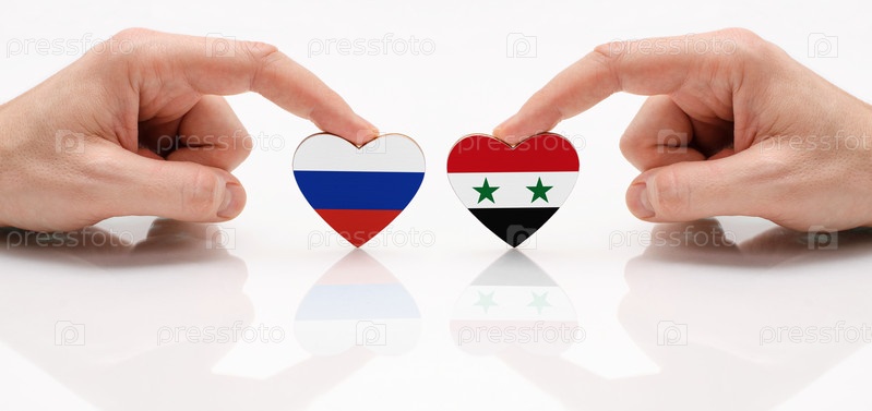 Флаг России и Сирии. Концепция дружбы и дипломатических отношений между Россией и Сирией