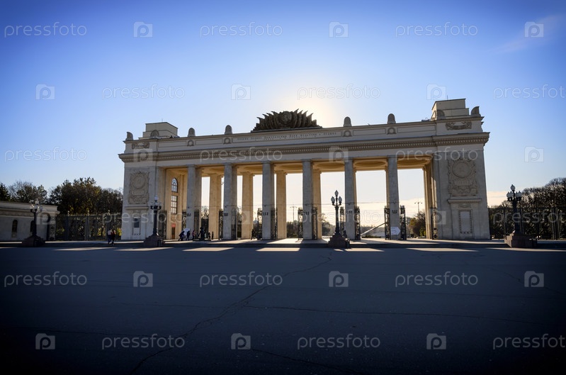Главные въездные ворота парка Горького, одной из главных городских достопримечательностей и ориентиров в Москве, Россия