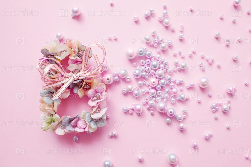 Международный женский день. Баннер, флаер, красивая открытка на 8 марта. Цветы в форме цифры восемь на розовом фоне