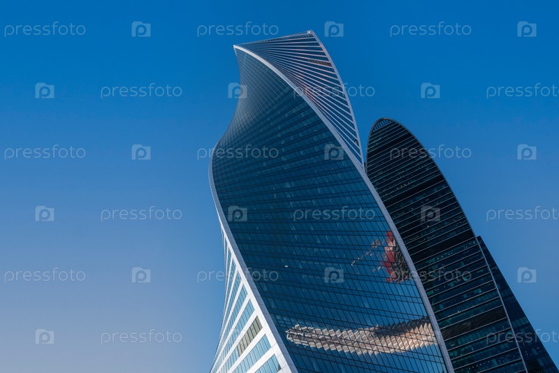 Москва, Россия - 02 февраля 2021 г.: Башня "Эволюция". Экстерьер небоскреба. Московский международный деловой центр