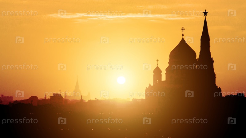 Вид на закат на Московский Кремль и Москву-реку в Москве, Россия. Архитектура и достопримечательность Москвы, городской пейзаж Москвы