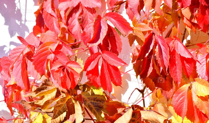 Разноцветные листья дикого или девственного винограда (лат. Parthenocissus) осенью