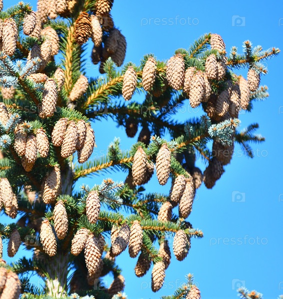 Шишки на голубой ели