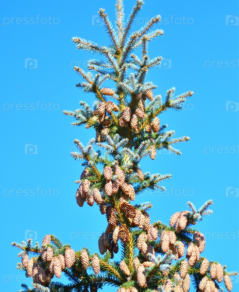 Шишки на голубой ели