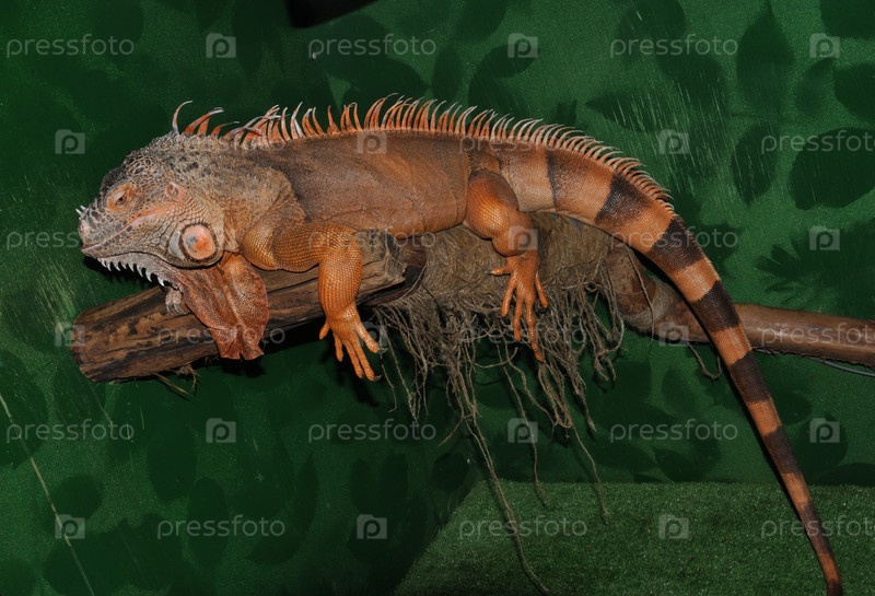 Красная игуана - морф зеленой игуаны (лат. Iguana iguana) в террариуме