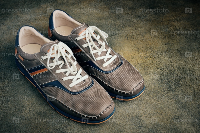 Роскошная повседневная кожаная спортивная обувь для мужчин крупным планом с копией пространства