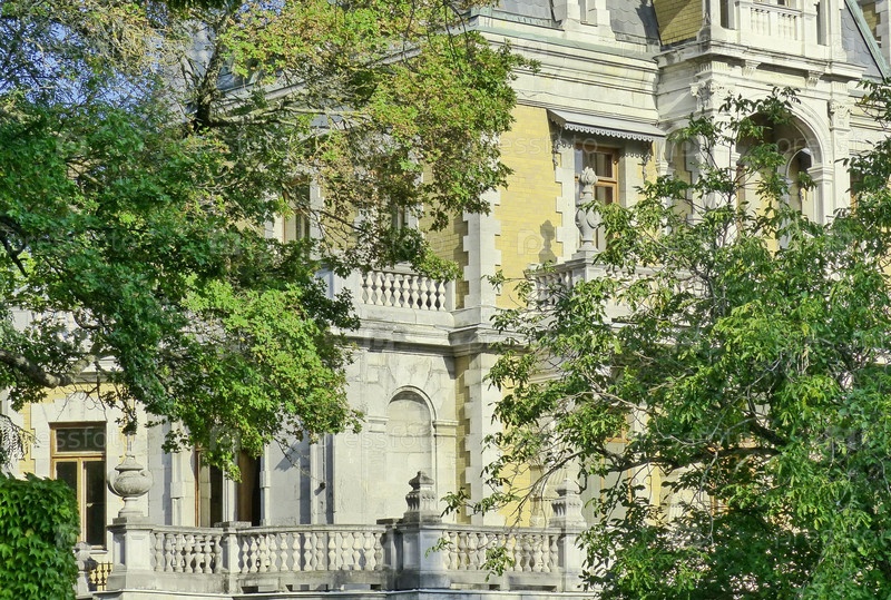 Массандровский дворец Александра III. В отделке дворца много средневековых деталей, прослеживаются архитектурные черты раннего барочного стиля Людовика XIII. Южное побережье Крыма, Верхняя Массандра, Россия, сентябрь 2019 г