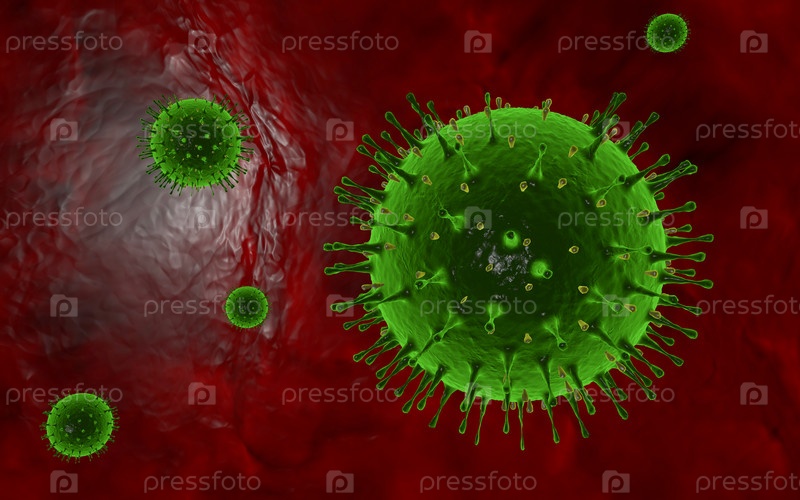 3D иллюстрация вирусов под микроскопом внутрикровной системы