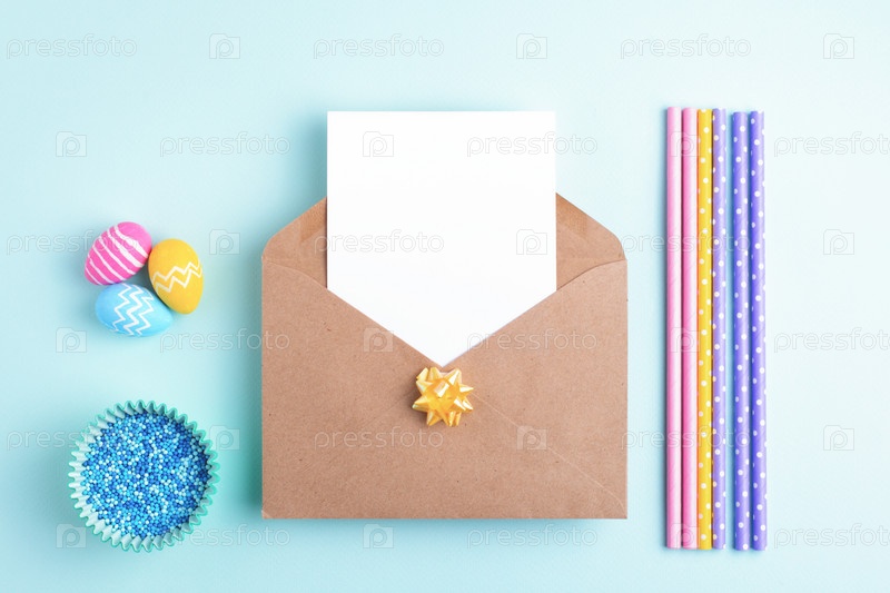 Пасхальный фон с пустой картой, пасхальные яйца, праздничное украшение