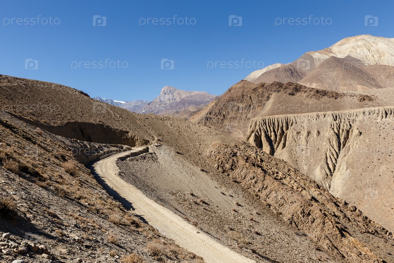 Горная дорога из деревни Кагбени в Муктинатх, нижний округ Мустанг, Непал
