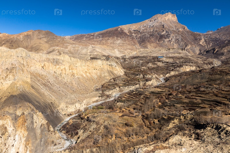 Вид на горы из монастыря в деревне Джаркот, Нижний Мустанг, Непал