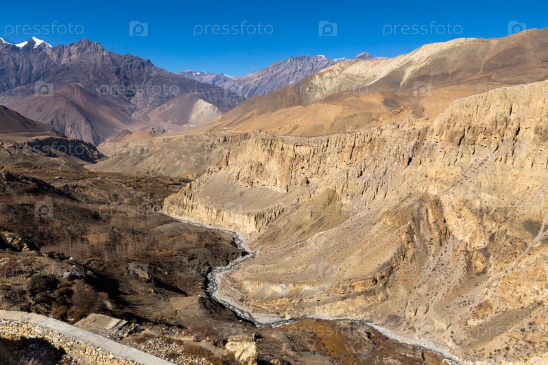 Вид на горы из монастыря в деревне Джаркот, Нижний Мустанг, Непал