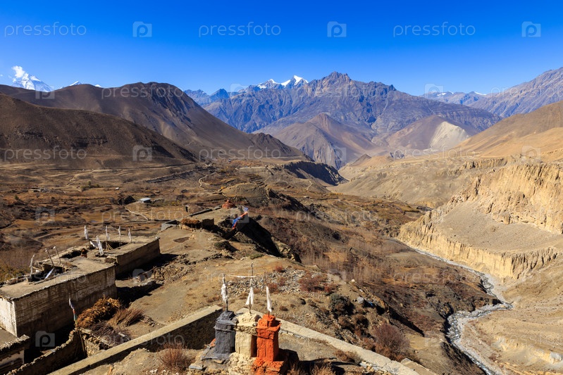 Вид на горы из храма в деревне Джаркот, Нижний Мустанг, Непал