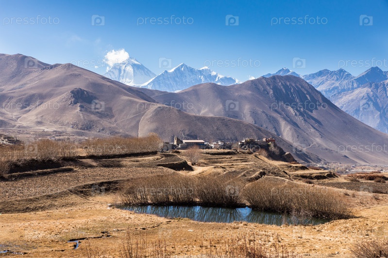 Осенний сельский пейзаж с видом на горы, Непал