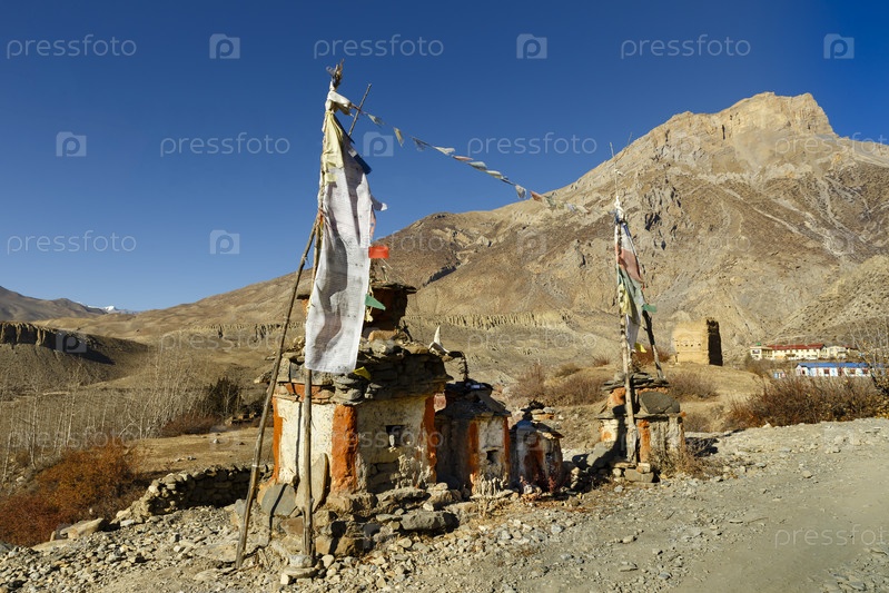 Буддийский чортен в деревне Муктинатх, Гималаи, Непал