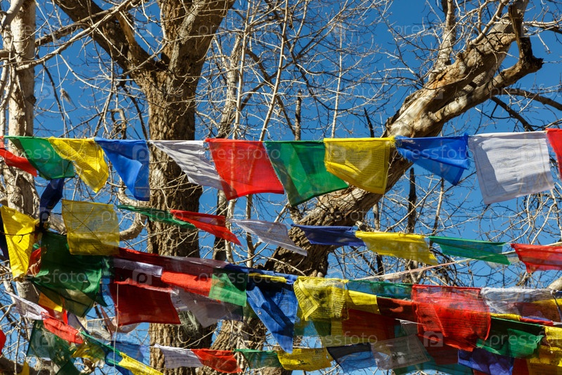 Буддийские молитвенные флаги на дереве, Муктинатх, Непал