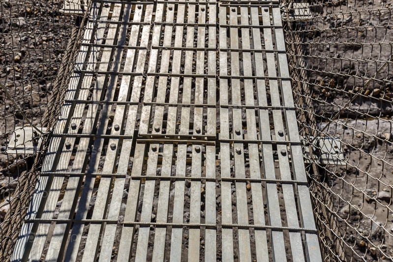 Металлический подвесной мост на железных тросах в Непале