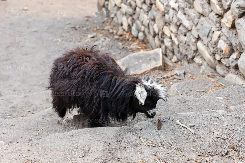 Маленькая черная коза поднимается по лестнице, Непал