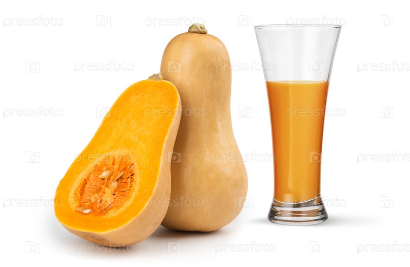 Стакан тыквенного сока и мускатной тыквы изолированы