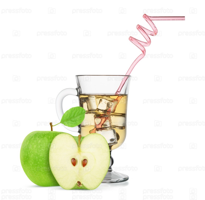 Яблочный сок в стакане, изолированные на белом фоне