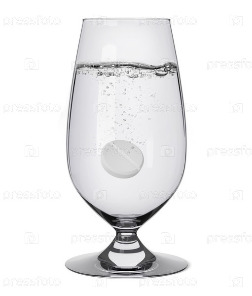 Стакан с водой и изолированными таблетками